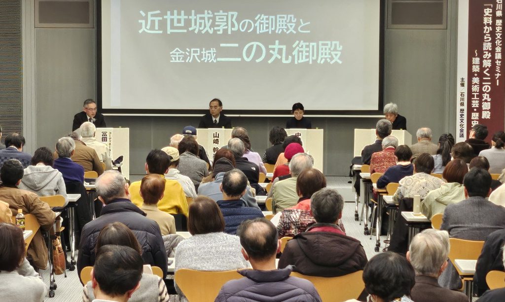 「史料から読み解く二の丸御殿~建築・美術工芸・歴史~」をテーマとして、金沢市の北國新聞会館で2025年度メインセミナーを開き、約170人が金沢城復元事業で工事が進む二の丸御殿について理解を深めました。